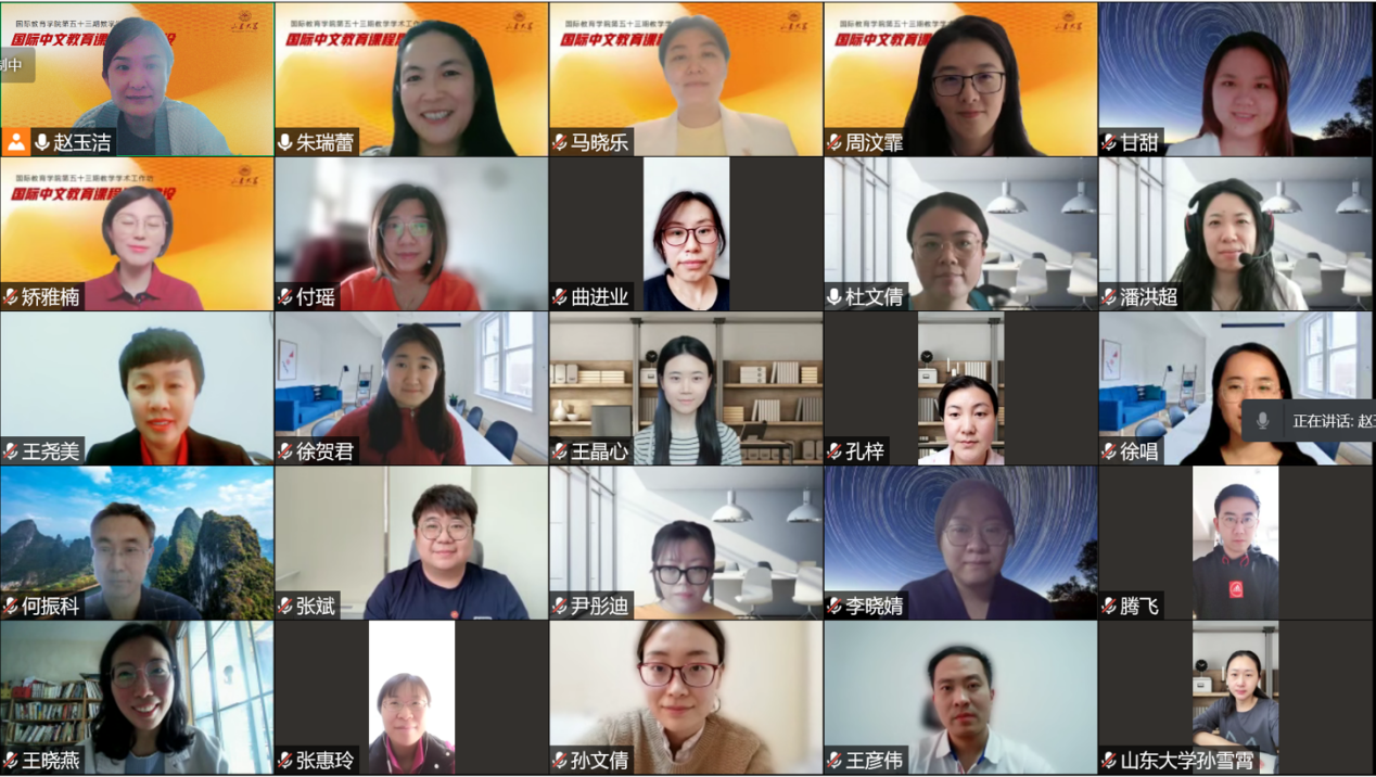 朱瑞蕾首先传达了学院党委书记徐希锋对国际中文教育课程思政建设的意见要求,强调国际中文教育课程思政要围绕习近平总书记教育重要论述进行建设,从中寻找国际中文教育课程思政建设难点的金钥匙,深入理解怎样培养学生,怎样做好老师,要将教师育己和育人相结合,把社会主义核心价值观和课程思政内容融入到课程设计和课堂教学实践,从中华优秀传统文化中挖掘思政教育资源。