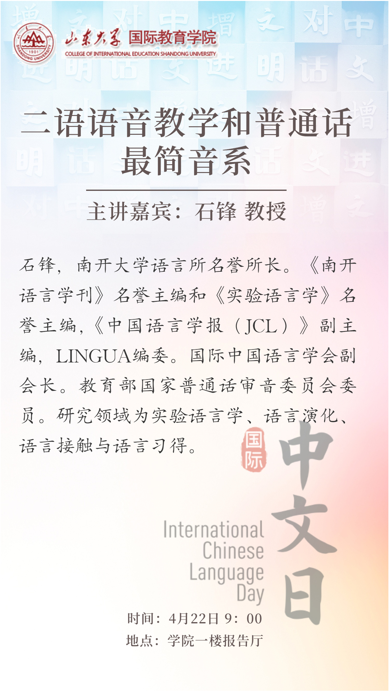 石锋,南开大学教授、博士生导师。南开大学语言所名誉所长。