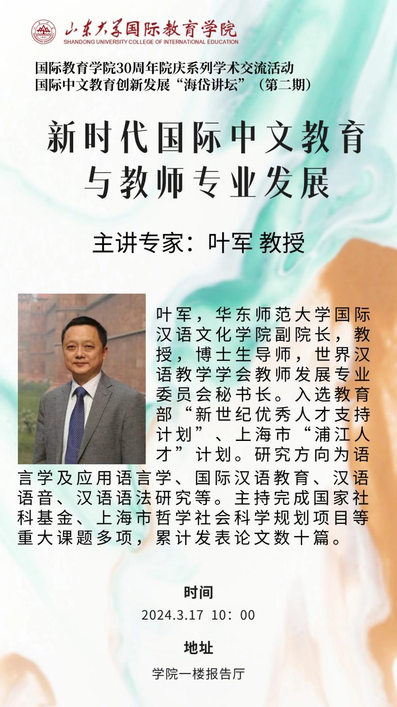 叶军,华东师范大学国际汉语文化学院教授、博士生导师
